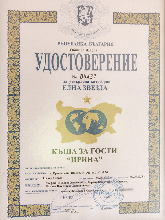 Къща за гости "Вила Ирина" разполага със следните помещения: